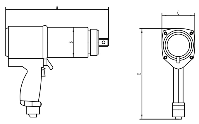 | 规格型号 | 驱动方头 (英寸) | 扭矩范围 (NM) | 转速(RPM) | A (mm) | B (mm) | C (mm) | D (mm) | 噪音 (db) | 重量 (kg) | |
