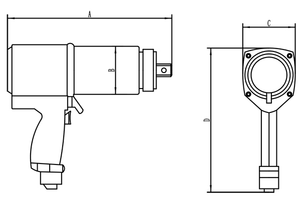规格型号 驱动方头 (英寸) 扭矩范围 (NM) 转速(RPM) A (mm) B (mm) C (mm) D (mm) 噪音 (db) 重量 (kg)