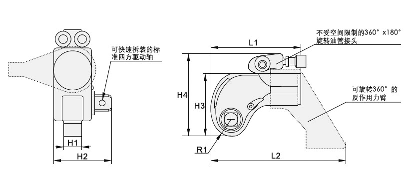 | 规格型号 | 扭矩范围Nm | 驱动方头in | H1 (mm) |