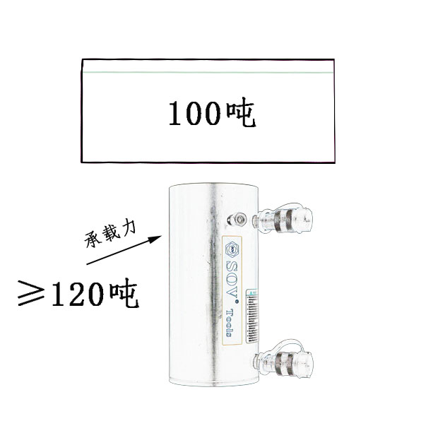 千斤顶最大的功能是顶升重物。我们在选用一款型号时,首先需要知道重物的吨位大小,这在我们选择前千斤顶的过程中至关重要。我们选择的千斤顶的额定承载能力(单位:Ton(KN))应该是大于重物的1.2倍,这样就会大大增加我们在顶升过程中的安全系数。例如:重物是100吨,那我们选择的千斤顶额定承载能力应该是120吨以上。如果要使用多台千斤顶同时顶升重物,为增大顶升的安全系数,我们应该选择多台千斤顶的总吨位大于重物的1.5倍。 例如:重物的重量是800吨,需要使用多台千斤顶同时顶升时,那么我们的千斤顶总吨位应该是大于1200吨,那么我们可以选用6台200吨的千斤顶。